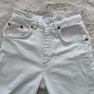 ZARA High Waisted Rolled Up Hem Wide Leg Off White Jeans