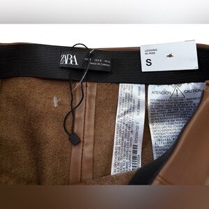ZARA, High-Waisted Faux Leather Leggings, Small, Brown