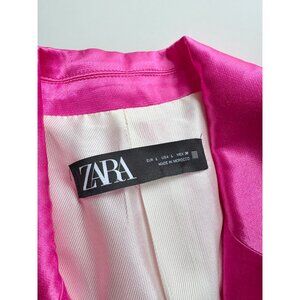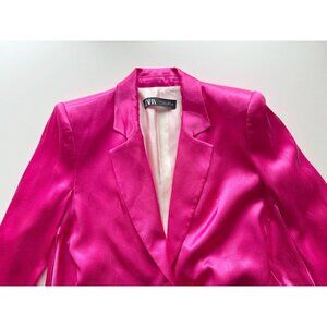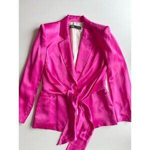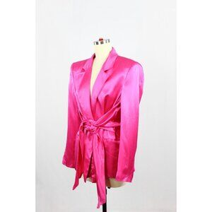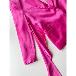ZARA Hot Pink Satin Waist Tie Oversized Single Breasted Blazer Jacket, Size L