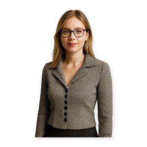 ZARA Black and Cream Houndstooth Cropped Top in size XS, ideal for fall wear.
