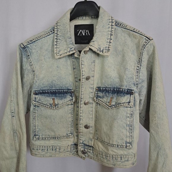 ZARA JEAN CROP JACKET Sz M LIGHT Distressed ACID WASH COASTAL COWGIRL STREETWEAR