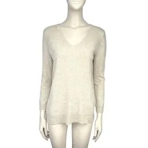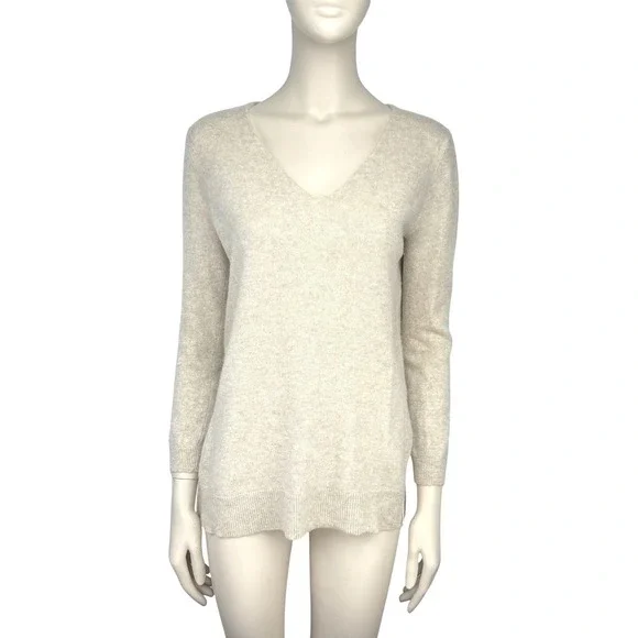 ZARA KNIT 100% Cashmere Oatmeal Beige V-Neck Sweater Size S