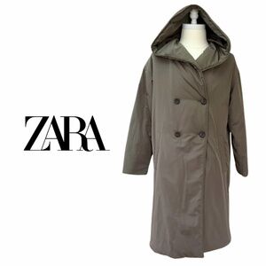 ZARA | Khaki Puffer Coat with Hood – Water & Wind Protection (Belt Missing}