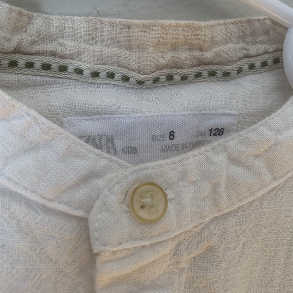 ZARA Kids Size 8 138cm Linen Blend White Button Down Shirt