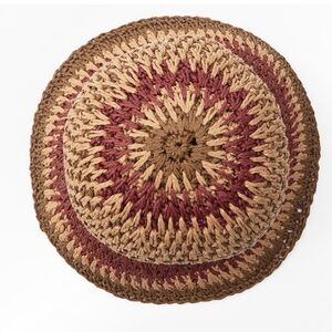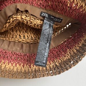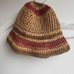 ZARA Knit Cloche Bucket Hat Women's SMALL Cap Brown and Red Woven Bucket Hat