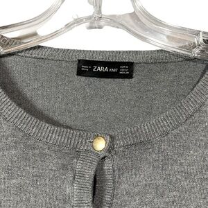ZARA Knit, Elegant Cardigan With Golden Button Detail, Medium, Grey