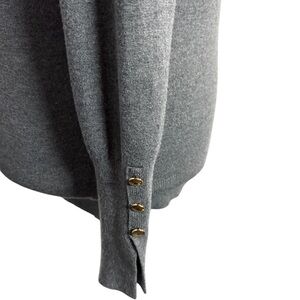 Elevate your casual wardrobe with this stylish grey cardigan. The design features a classic round neckline and a full-length button placket with distinctive golden buttons that add a touch of elegance to the piece. The long sleeves end in ribbed cuffs, ensuring a snug and cozy fit, while the overall silhouette is relaxed yet flattering, versatile enough for various day-to-day ensembles. Good condition ๐ / ๐ญ