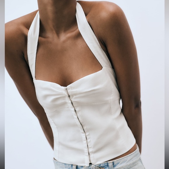 Trendy Zara linen blend halter top. Size small but runs big. Never worn, brand new without tags. So cute and trendy!