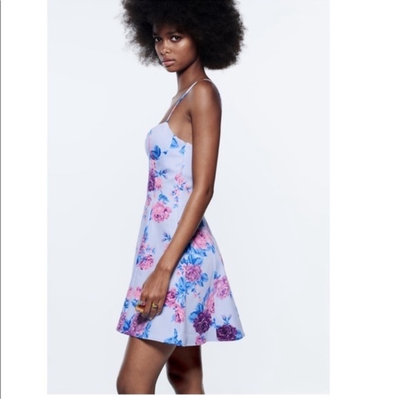 ZARA Lavender Floral V-neck Adjustable Straps mini dress size Small