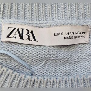 ZARA Light Blue Beaded Short Sleeve Sweater. Size Small
