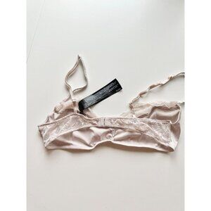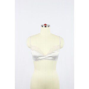 ZARA Light Grey Satin Lace Trim Triangle Bralette Bra, Size L