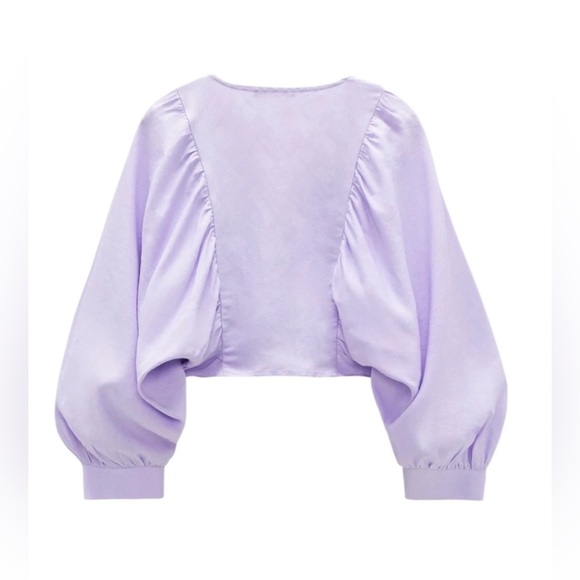 ZARA, Lilac Plunging Deep V-Neck Puff Sleeve Crop Top, Medium