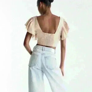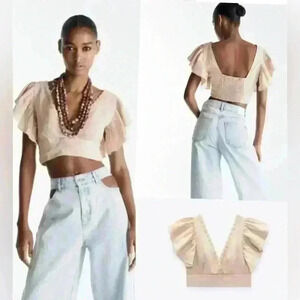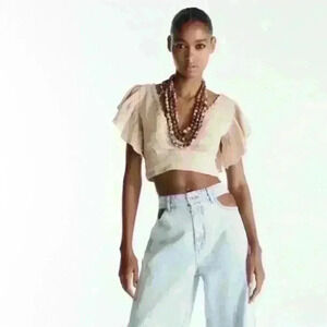ZARA Linen Blend Crop Top Boho embroidered size M