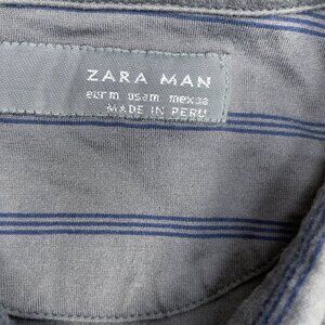 ZARA Man 100% Soft Cotton Long Sleeves Gray with Blue Stripes Polo Shirt Sz M