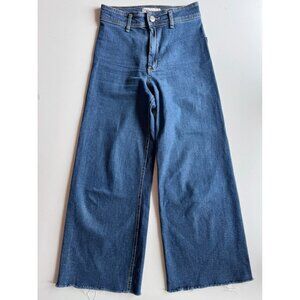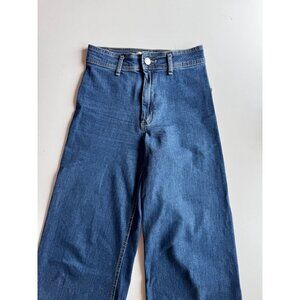 ZARA Marine Straight Indigo Stretch Denim High Waisted Wide Leg Jeans, Size 4/26