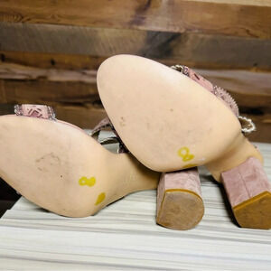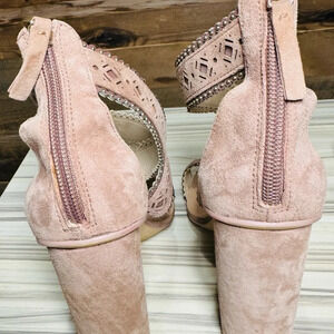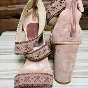 ZARA Mauve pink Laser Cut Heel studded Sandal US8 holidays suede chunky heel