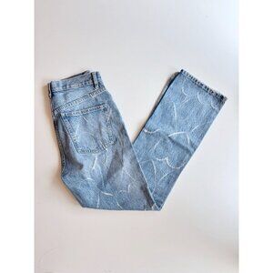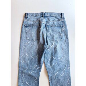 ZARA Medium Wash Heart Distressed High Rise Straight Leg Jeans, Size 6/28
