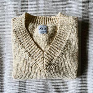 ZARA Men's Knitted Cream Colored Cotton Vest (Size: S-M)