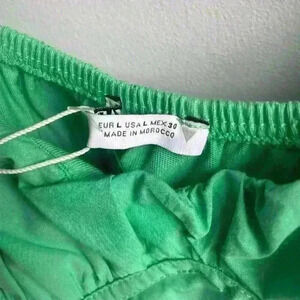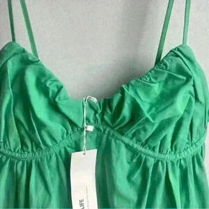 ZARA Mini Babydoll Dress Green Spaghetti Straps Cup Cotton Ruched Short Size L