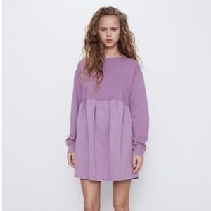 ZARA Mini Dress Floral Print Daisies Ruched Long Sleeve Sz Pleated Lavender XS