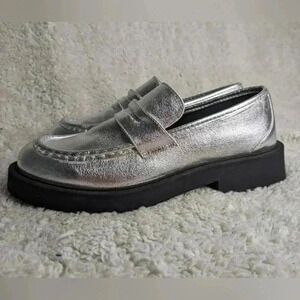 ZARA Mocassins women size 37 = 6.5 us in great used condition silver and black