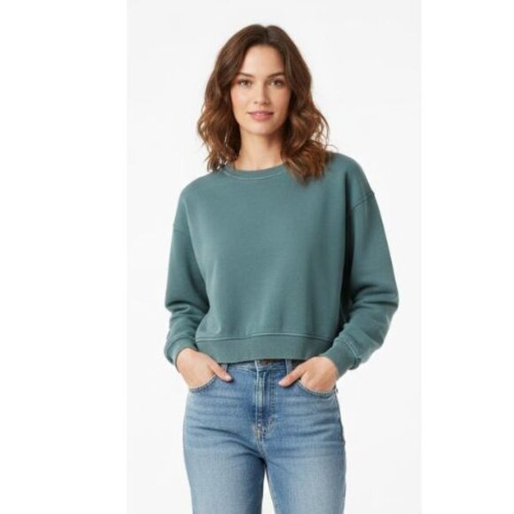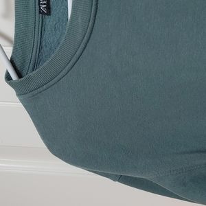 ZARA Moss green cropped crew neck sweatshirt top shirt Medium