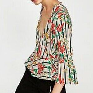 ZARA Multi color Blouse cache Flowers Wrap Striped