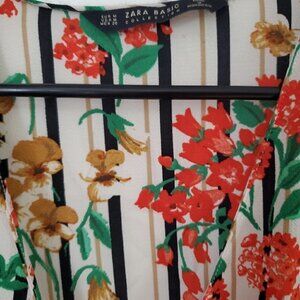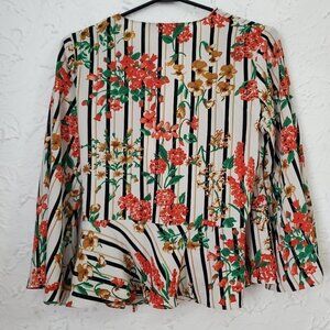 ZARA Multi color Blouse cache Flowers Wrap Striped Size medium 35