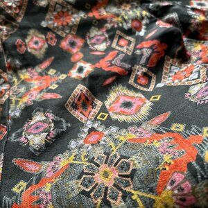 Crafted for comfort and style, these black jeans feature a soft cotton-spandex blend with a flexible stretch fit. Accented with vibrant pink, orange, and yellow pattern for a bold pop of color. Finished with two functional back pockets for everyday ease.