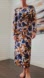 Style: Midi length dress with long sleeves and a classic round neckline.
