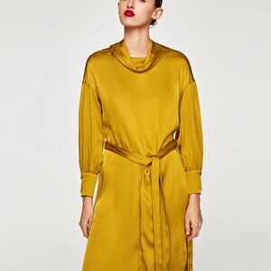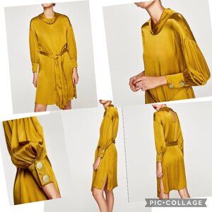 ✨ ZARA Mustard Gold Satin Belted Mini Dress ✨