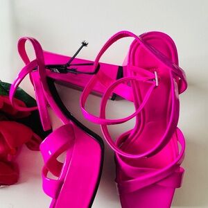 ZARA NEON PINK STRAPPY CHUNKY PLATFORM HEEL SANDALS SIZE 37