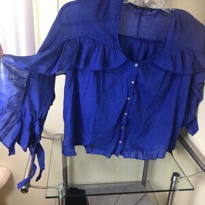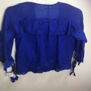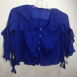 ZARA NEW Ruffles Ties Cotton Lightweight Flowy Button Shirt Blouse Top BlueFairy