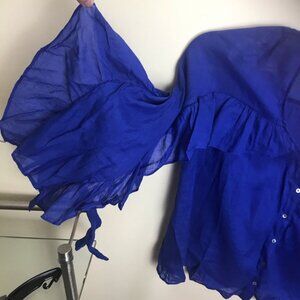 Pretty ruffles front and back, and ties at sleeves. Light & airy fabric. Top is in brand new with tags condition. Never worn.