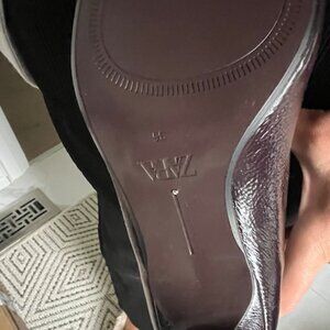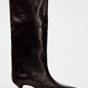 ZARA NEW WOMAN WIDE LEG KITTEN HEEL BOOTS PATEN EFFECT BURGUNDY RED 1006/410