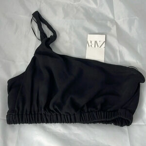 ZARA NWT Black Twisted One Shoulder Crop Top Elastic Band Hem Lined Summer L