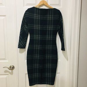 Zara Woman Plaid Tartan Navy Boatneck Bodycon Midi Stretch Dress, the fabric is comfortable and stretchy