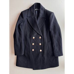 ZARA Navy Blue Wool Blend Double Breasted Short Peacoat Coat, Size M