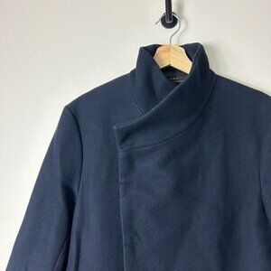 ZARA Navy Hidden Buttons Wool Blend Pea Coat Size M