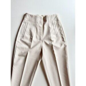 ZARA Off White Suiting Twill High Waisted Tapered Trousers Pants, Size S