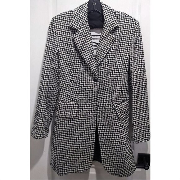 ZARA | Open Back Blazer Dress in Black/White Houndstooth
