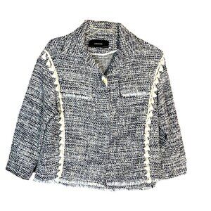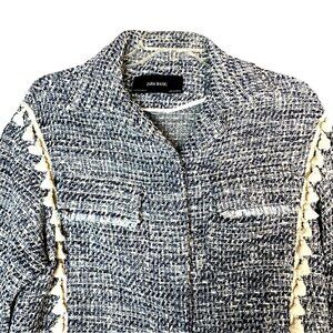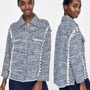 ZARA Tweed Jacket w/ Tassels & Pockets Blue/White Color