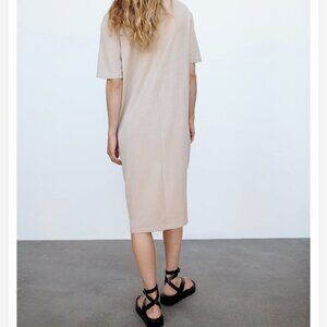 ZARA Oversized Taupe Short Sleeve Casual Midi Tunic Dress US L
