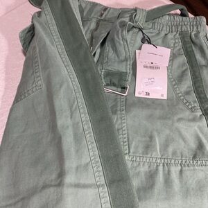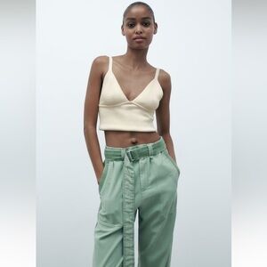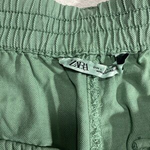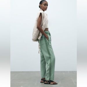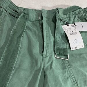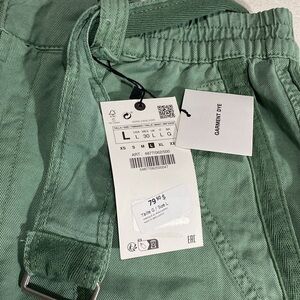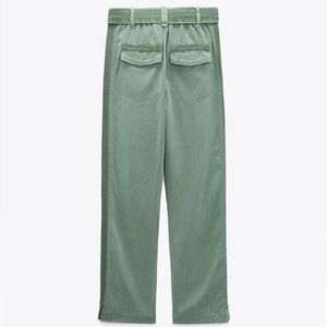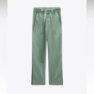 ZARA PAPERBACK PANTS WITH CONTRASTING BELT GREEN Sz L