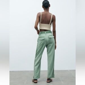 ZARA PAPERBACK PANTS WITH CONTRASTING BELT GREEN