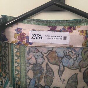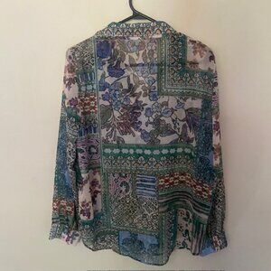 ALL OVER MULTI COLOR PRINT CHIFFON BUTTON FRONT BLOUSE WITH LONG CUFFED SLEEVE