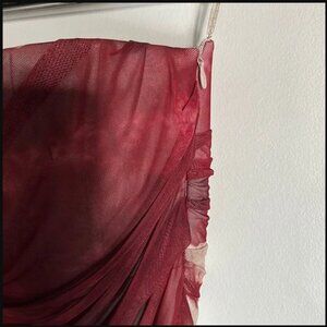 Beautiful midi strapless dress from Zara. Side zipper closure. Tie dye effect. Red and beige mesh. In great condition! Material composition: 100% Polyester. I love this dress but it's too small for me. Tag says S, would fit XS-S.
