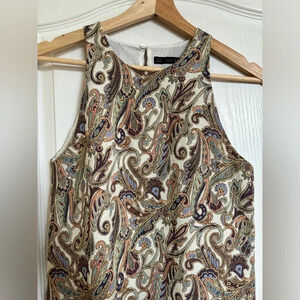 This printed dress is absolutely eye catching with a retro feel! A lovely pattern on a classic cut mini dress. Keyhole back with button closure.