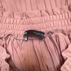 Elegant blush pink skirt with pleats. Features a comfortable elastic waistband. Ideal for stylish outings.