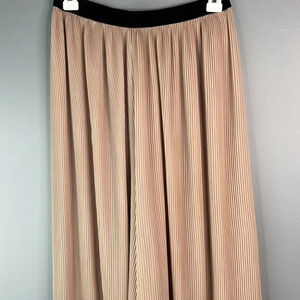 ZARA Plisse Culottes Tan Nude Wide Leg Crop Contrast Black Elastic Waistband S